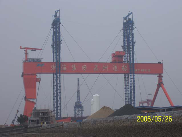浙江舟山五洲船廠 300 噸龍門起重機(jī)整體提升工程